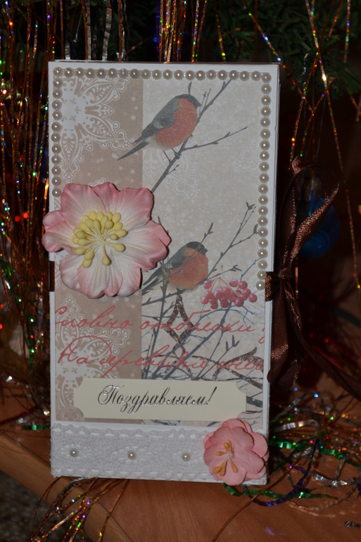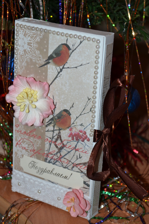 А это ещё одна работа сделанная на днях и сегодня подаренная опять же к Новому году)))) Пусть я точно также не соблюдала всех канонов мастериц, но я и не претендую на высокое имя СКРАПЕР)))