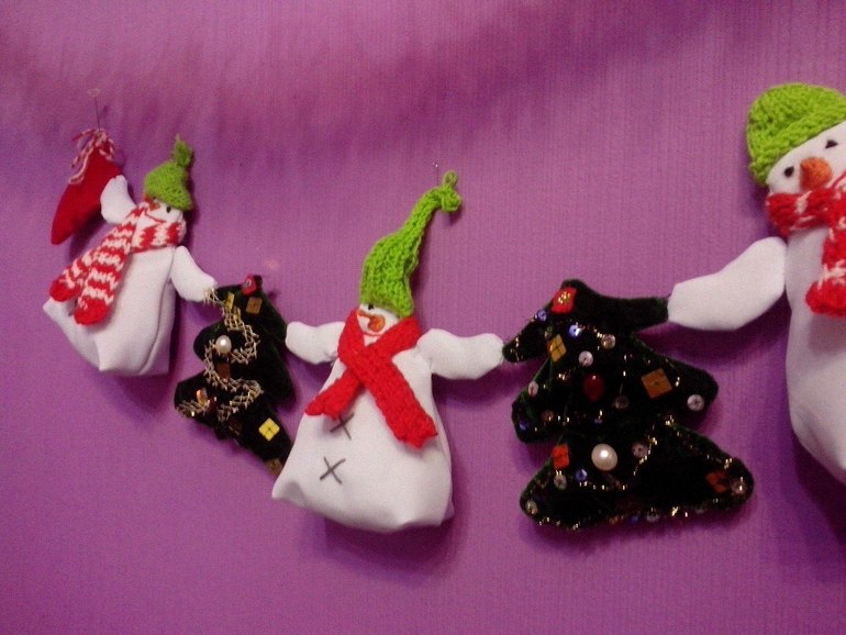 Декор, витражи.Эту гирлянду я пощила за один вечер, точнее ночь))) потому что днем шила, потом пекла печенье и ночью дошивала))) Очень легкая и веселая. Идею позаимствовала в инэте + добавила свои изюминки в виде елочек.