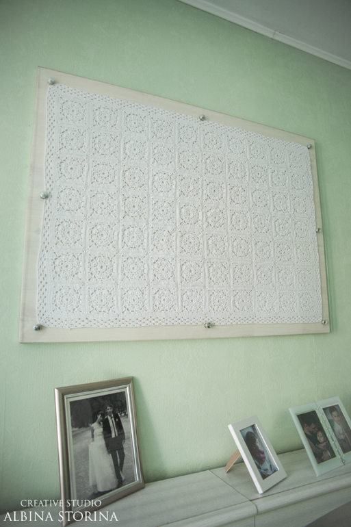 Работа проделана серьезная, это хорошо... Но вот выглядит не очень аккуратно... Эмн.. Я не хочу, чтобы Вы подумали, что я придираюсь, но — почему бы не расправить "полотно", отпарить, слегка пройтись хотя бы спреем с крахмалом (как для рубашек), чтобы все линии были ровные и четкие? Ведь узор с четкими линиями, а полотно получилось все волнами =( И я бы его перевернула низом наверх — а то шовчик получается внизу, очень бросается в глаза =)И еще мне кажется что с цветом не совсем получилось, смотрится блекло и не выделяется... Может быть песочный был бы больше в тему? Или хотя бы дерево покрасить более темной краской под полотном, чтобы были заметны "дырдочки" ?В общем, извините, если хоть чем-то обидела Вас, я без умысла. Просто Видела уже Ваш пост, и снова промотала на него случайно и уж решила написать... Еще раз — пардоньте! =)