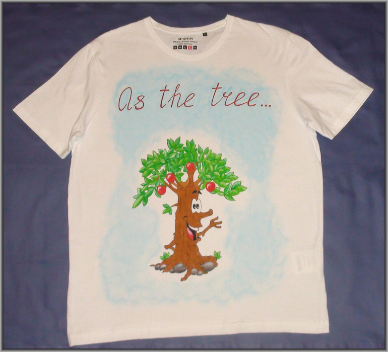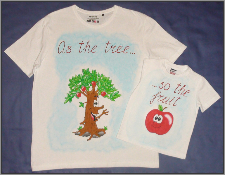 Роспись по ткани, батикПапе и сыну. Английский вариант нашей поговорки "Яблоко от яблоньки..." :-)