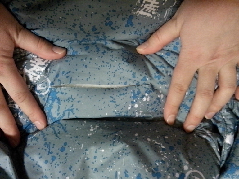 выложила фотку распорол прямо посередине спины, четко по внутреннему шву на спине