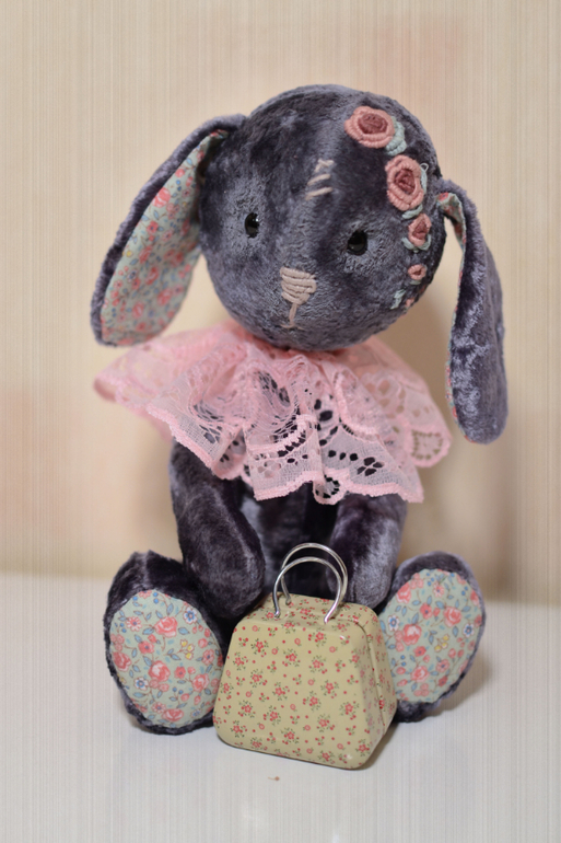 Игрушечный мир - животныеЗайка тедди сшита из винтажного плюша, окрашенного вручную, цвет получился фиолетово-синий и как будто запыленный))