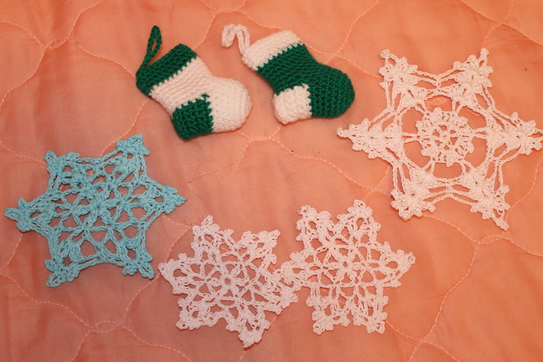 А ещё Юлины рукоделочки, которые сразу украсили нашу ёлочку!!!!!!!!!
