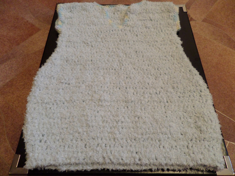 1. Жилеточки для племянницы - коричневая из шерсти, тепленькая, мягкая. Голубая - плюшевая детская пряжа. Честно говоря, ожидала от этой пряжи большего. Мне как-то не очень понравилось, как выглядет из нее готовое изделие, хотя наощупь очень мягкая и нежная.