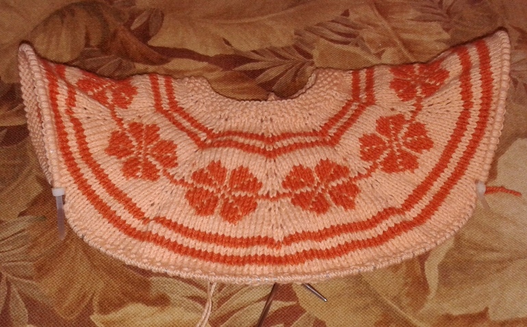 Для начала выбрала схему жаккарда и переделала ее с прибавками для вязания кокетки. Вот что получилось: