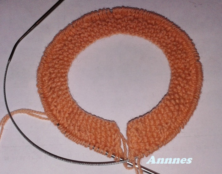 Набрала на спицы 75п. и провязала 6 р. жемчужной вязкой.