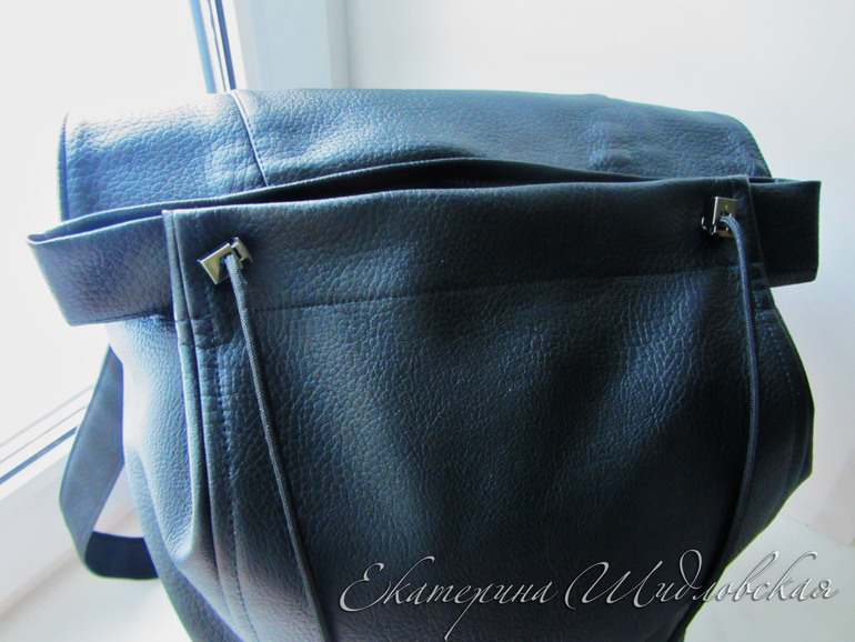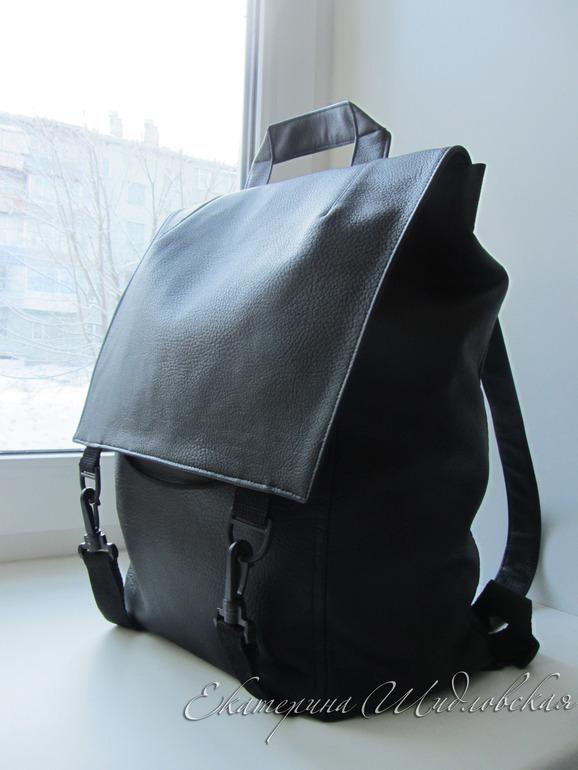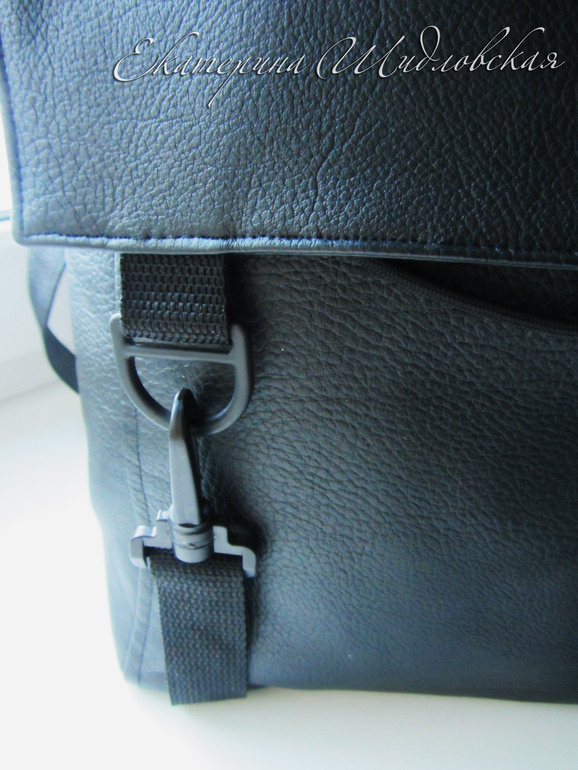 Сшила его ещё осенью, что-то всё никак сфотографировать не могла:) Муж нарисовал мне что он хочет и уехал в командировку, а я потом разбиралась как его фантазии в жизнь превратить. Что-то пришлось убрать, чтобы не нарушать функциональность, что-то добавить. Потом выяснилось, что клапан он хотел пообёмней и покороче, но надо яснее обяъяснять:) А дно сделала, как пожелал - в форме трапеции. В результате получился такой суровый мужской аксессуар.