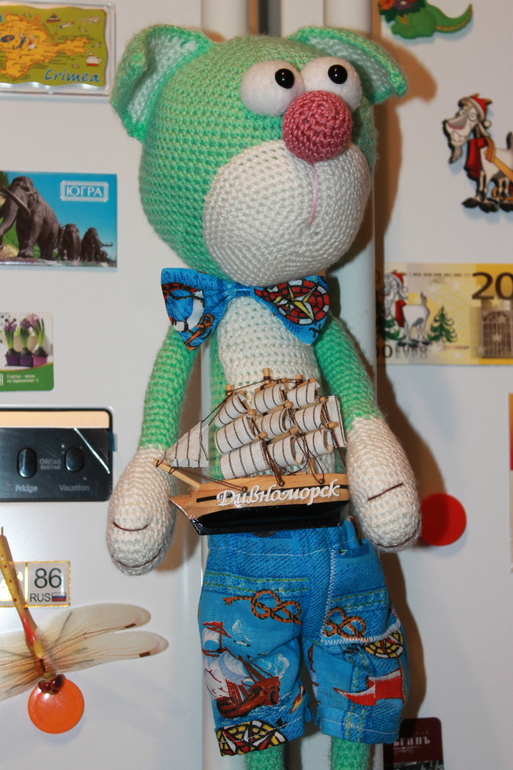 обновился и мятный котик, одела его в шортики и бант на морскую тематику (всё это снимается)