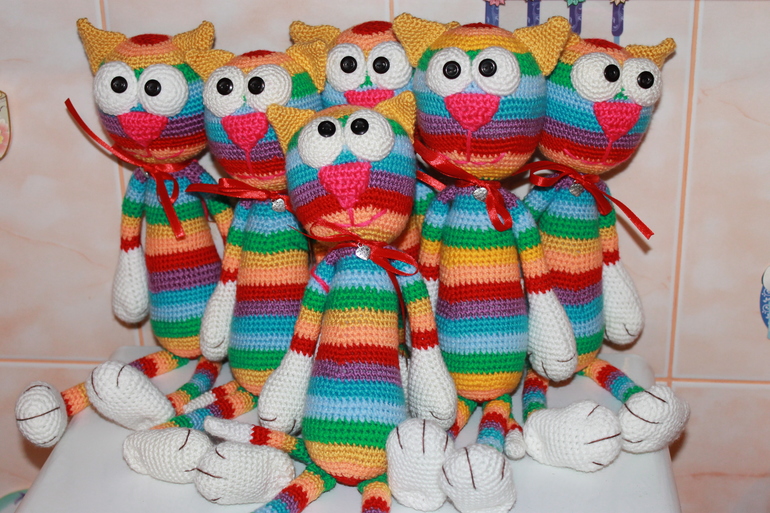 эти шестеро связаны на заказ (ростом по 35см, на шейках бантики с подвесочкой) + к ним Ёжик - поедут в Екатеринбург