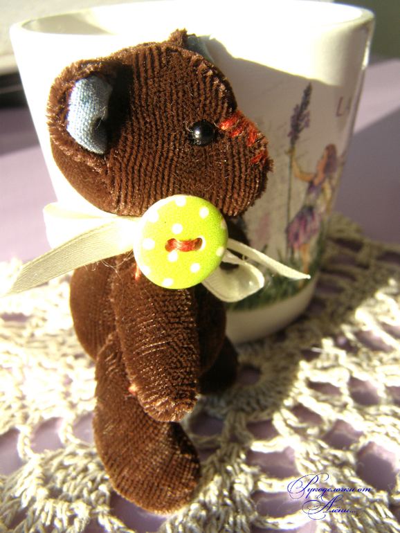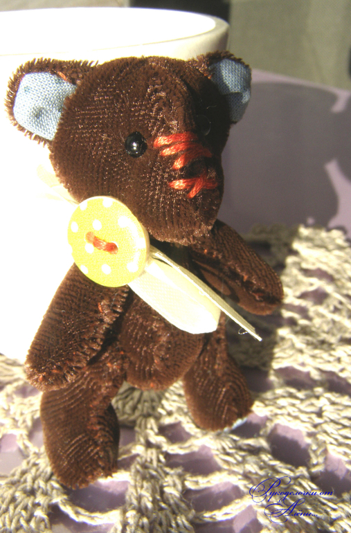 Игрушечный мир - животныеДля новой куколки пошился мини-мишка..темный шоколад. Куколка ещё не готова...а мишутка сидит уже дожидается. Очень хотелось, чтобы он выглядел уже немного(или много)) с историей. Девочки посоветуйте, чем по швам пройтись можно. Он тёмный, чтобы было заметно. Маслом попробовала почти не видно(. Ростик 7см..такой малыш..малышастый)