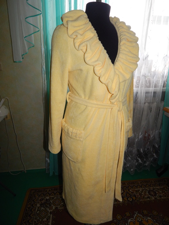 Шитье одежды, выкройки, ремонт одежды, шторы, швейные машины (уже приобретенные)На дворе зима,а я вам так и не показала свой теплющий халатик.Я любитель всяких там рюшечек,сборочек,складочек и всякого рода прибамбасов...И решила я в халате тоже воротничок и кармашки обыграть.Ткань 80%хлопок 20% п/э.Вот что я получила в итоге.
