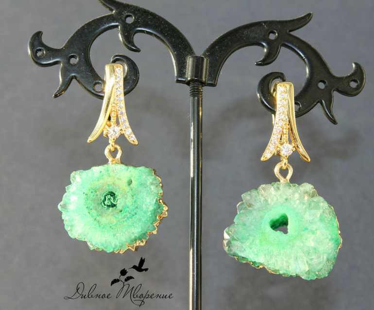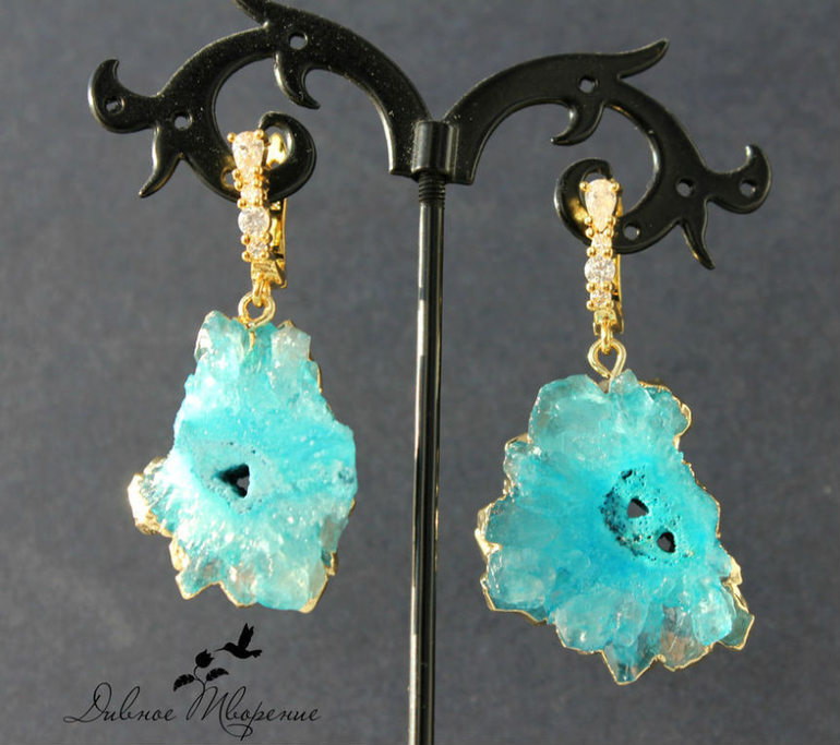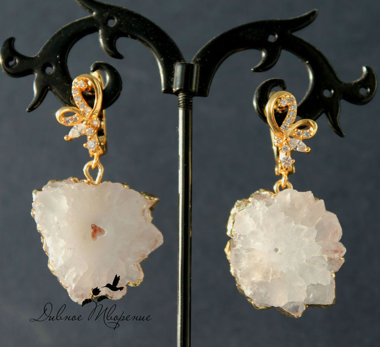 И позолоченные серьги с друзами кварца.