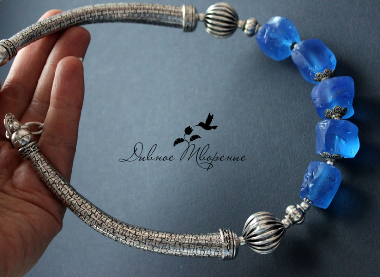 И два колье-чокера с голубыми и синими кварцами