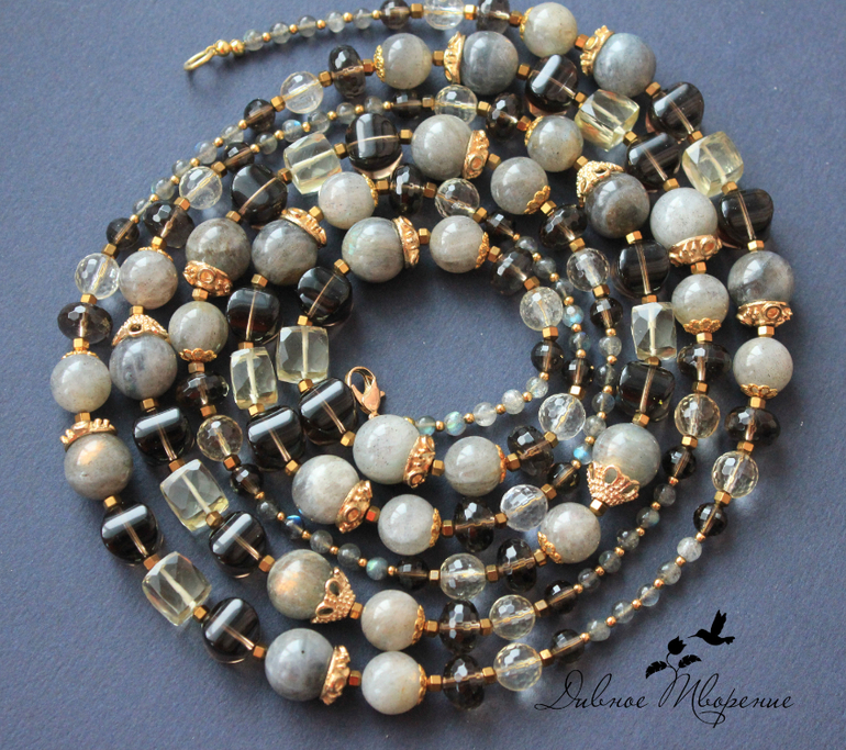 Длинные бусы (сотуар) из лабрадорита,раухтопаза и цитрина.