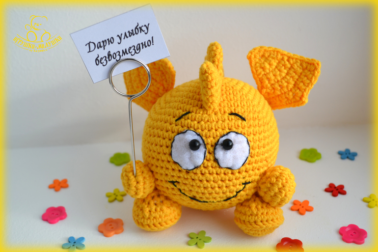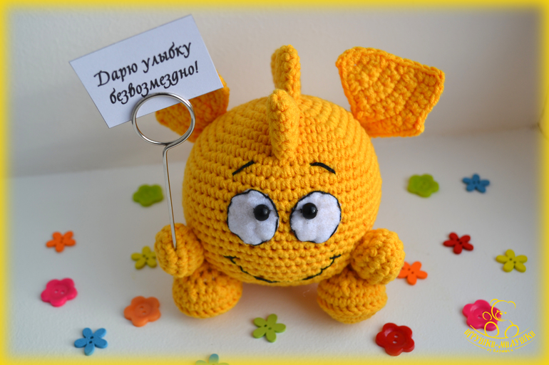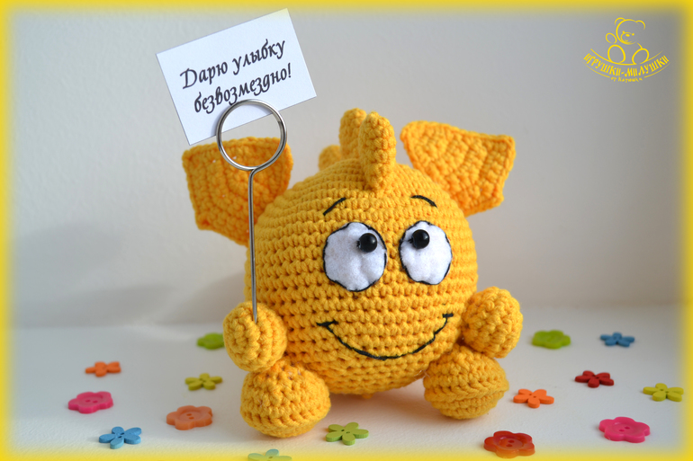 Очень хорошенький солнечный улыбунчик)))такой яркий и добрый,так располагающий к себе!так и просится на ручки))