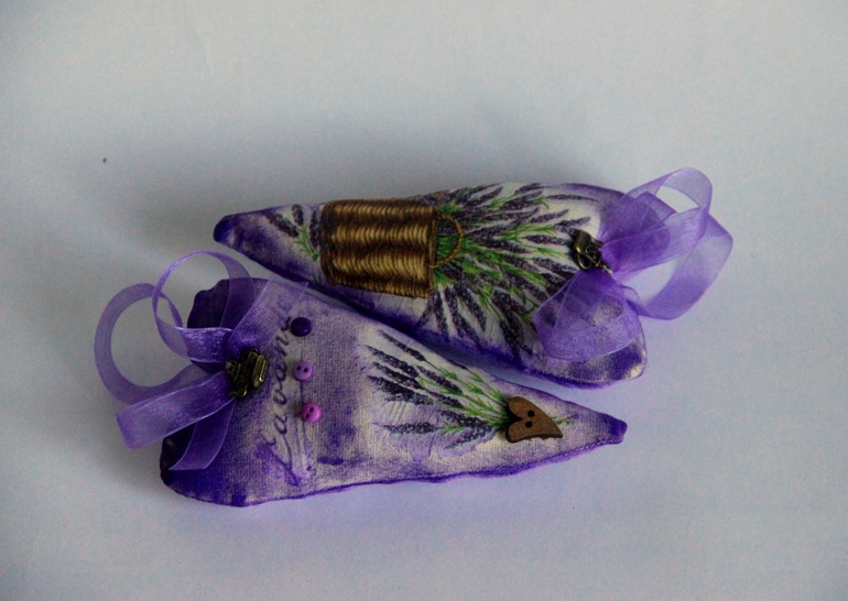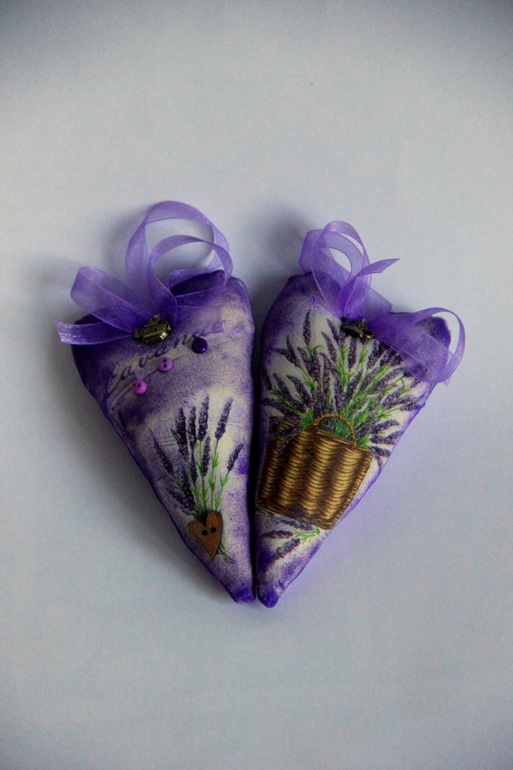 ДекупажСшились-задекупажились небольшие (около 15 см) сердечки. Хлопок, акриловые краски, внутри лаванда россыпью - сухоцветы дают приятный аромат.