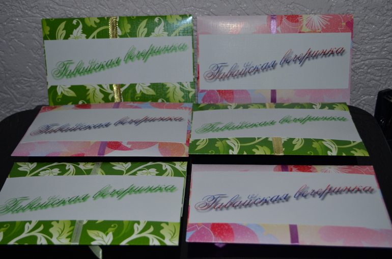 А это конвертики для приглашений на гавайскую вечеринку, Денису 5 лет исполнялось, а я была беременна Марком