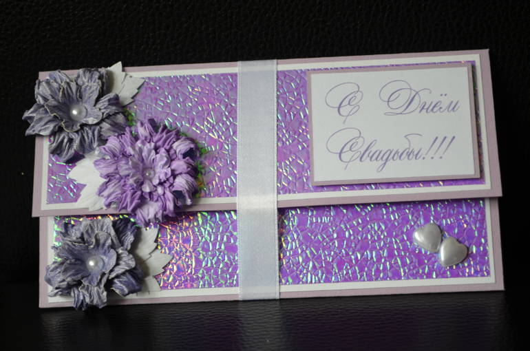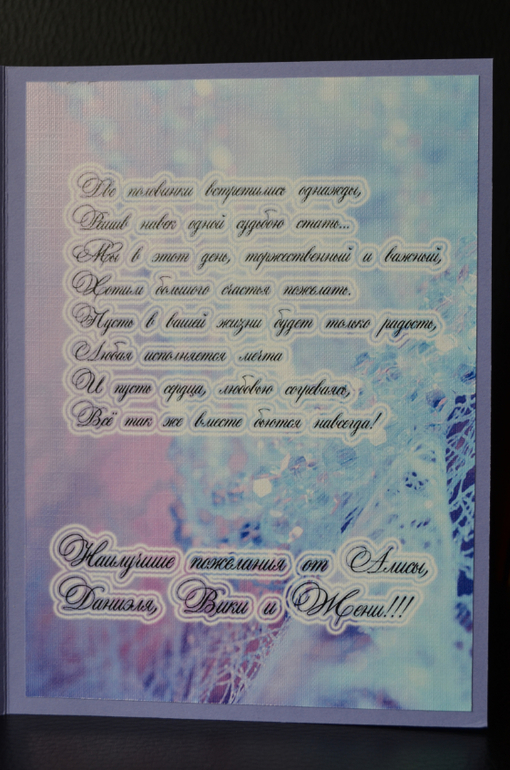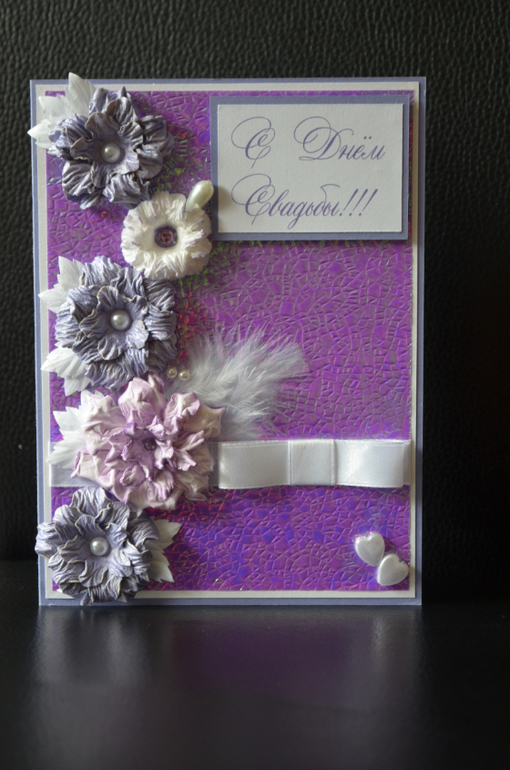 Примерно в это же время заказали мне открытку на свадьбу, в этом заказе главным был цвет-сиреневый.