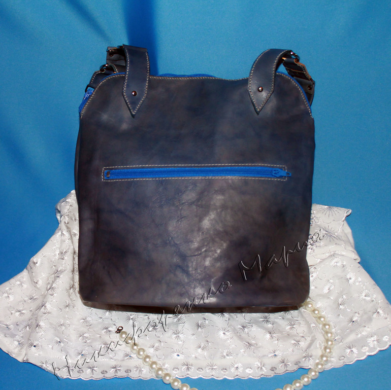Изделия из кожиСумка сшита из натуральной итальянской кожи в технике казанская узорная кожа. Раньше, да и сейчас в Казани так шили ичиги - обувь. Для получения орнамента кусочки кожи сшивали встык прокладывая между ними мулине. Это делается вручную с помощью шила. Мулине я использовала шелковое. Внутри сумки карман на молнии и кармашек для мобильного телефона. Сзади - тоже карман на молнии.Подкладка - из американского сатина.
