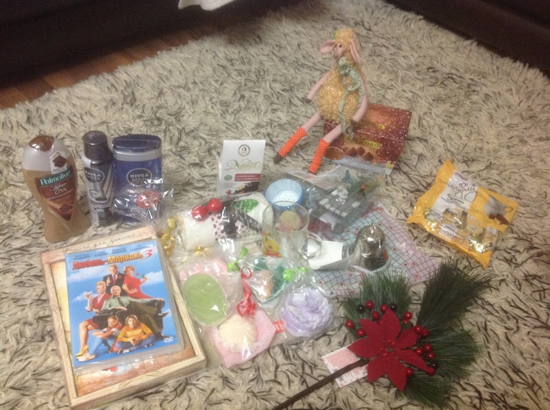 Вот и мы дождались посылку по Новогоднему ОП!!! Пришла она к нам от очень талантливой девочки Натальи , главной героиней обмена была овечка сделанная золотыми руками Натальи:))) Но кроме долгожданной овечки, была целая гора подарков, приглашаю желающих разделить со мной радость :
