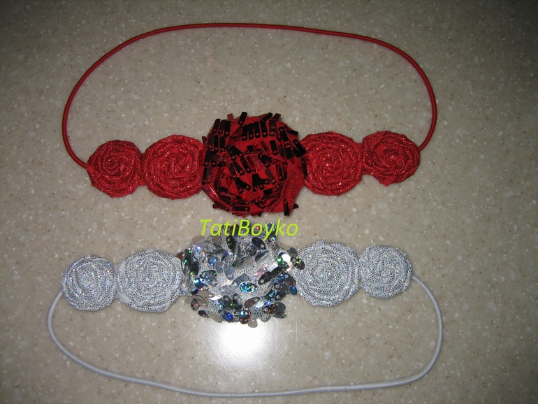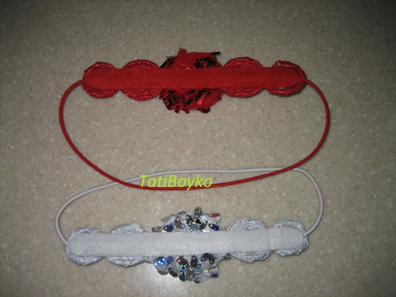 И так как мои девочки не любят долго ходить с заплетенными косами и хвостиками, в комплект к платьям сделаны повязки на голову:
