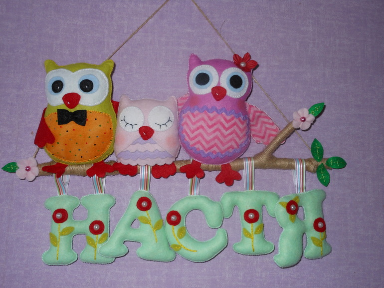 Дальше тоже были совы - именное панно для маленькой Насти