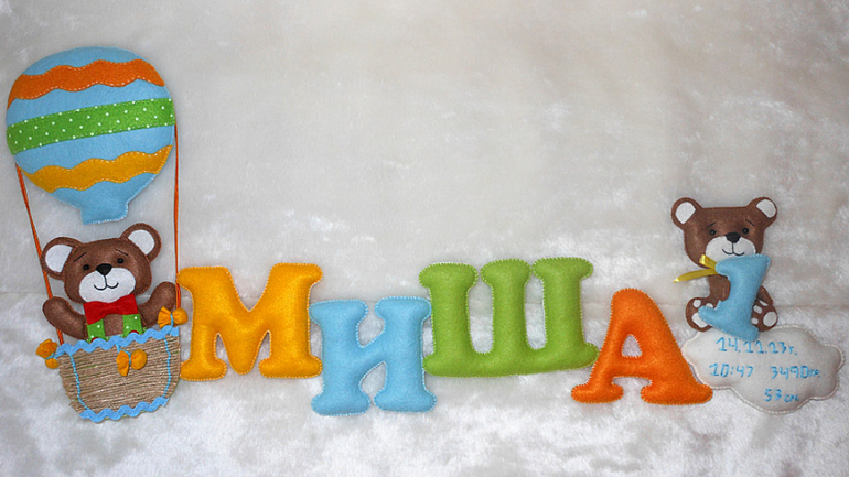 Потом с сов я перешла к мишкам - именное панно для сына подруги (оно до сих пор остается у меня одной из самых любимых работ)