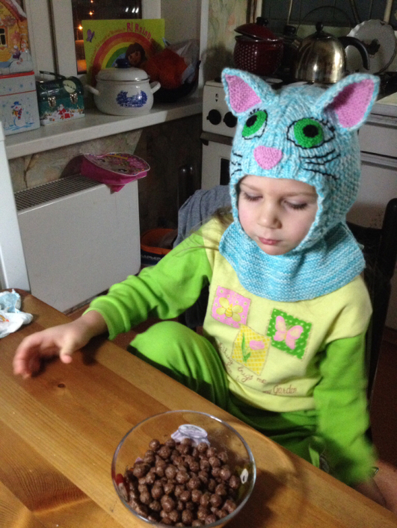 Крутая шапка) На ребёнке смотрится просто супер, но на первом фото киска немного упорота