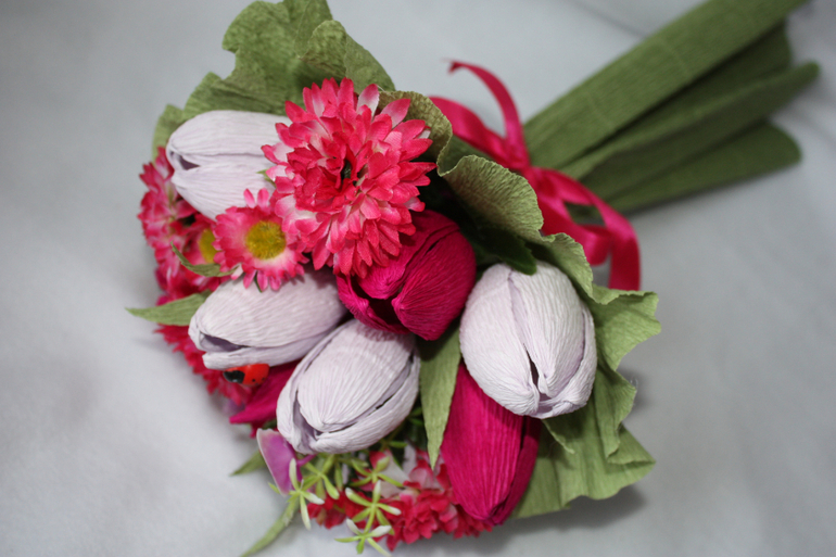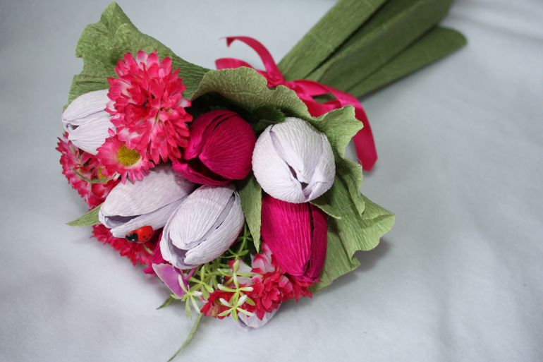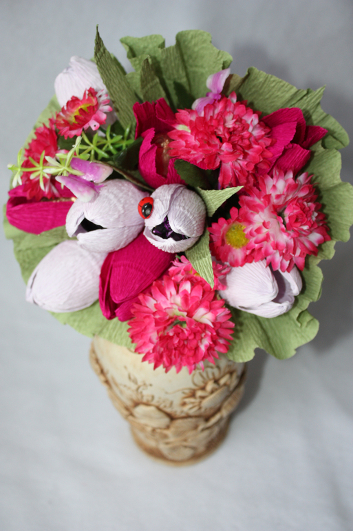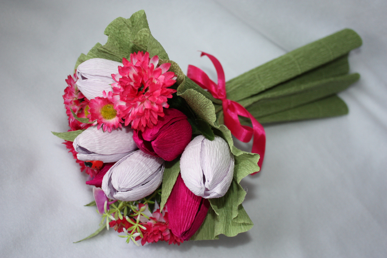 С тюльпанами совсем не плох, чуть мелко цвет не в тему, а так вполне себе. А вот второй букетик, что-то не то, цвета не много не подходят друг к другу, но тоже уже гараздо лучше.