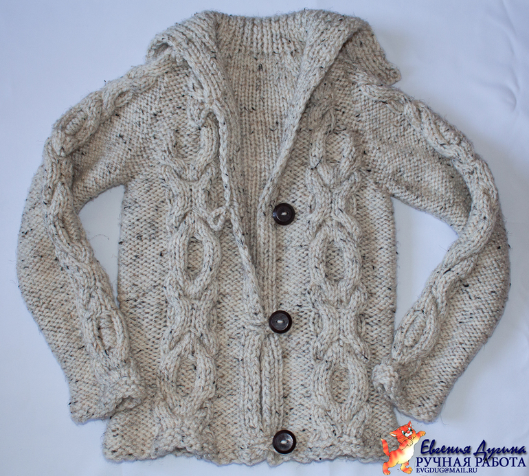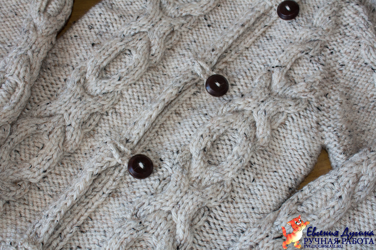 Пожеланием Полины было: "Свяжи мне кофту с косами"). После недолгих переговоров пришли к такому вот результату)