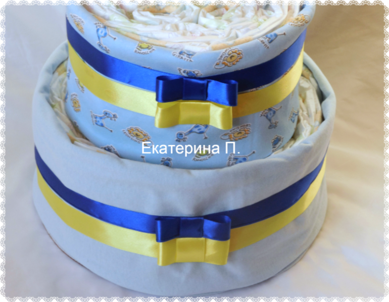 Ну вот и добралась я, наконец, до тортика из подгузников. Дочкина крестная осенью родила сыночка и ей в подарок я " испекла" этот торт. В составе 44 подгузника Мэррис, 2 пеленки, атласные ленты, игрушка Анны де Вэлли ( уж больно они мне нравятся).