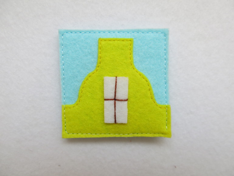 Не знаю откуда Вы эту идею взяли, но у меня лежит книжечка "Самые первые аппликации", купленная специально, чтобы воплотиться в фетре (ааа, когда же детки подрастут и время появится на шитье) с похожей идеей: домик (или это замок?) из отдельных модулей-квадратиков и крыши треугольнички)))))