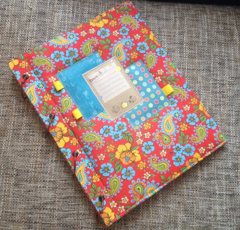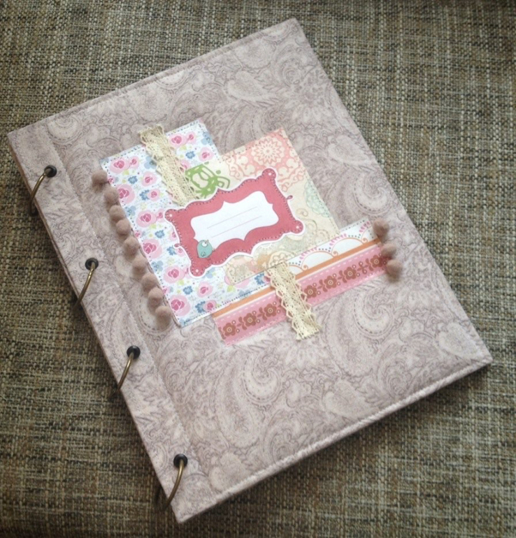 Внутри все стандартно: на форзаце большой прозрачный карман, форцацы оформлены скрапбумагой.