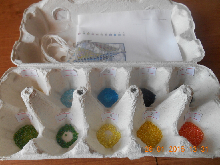 Картинки очень милые! В специальных магазинах продаются органайзер для бисера, или в рыбацком магазине органайзер для крючков. А так же можно заменить лотком для перепелиных яиц, или коробкой с под конфет. Там ячейки меньше, удобнее будет брать иглою бисер.