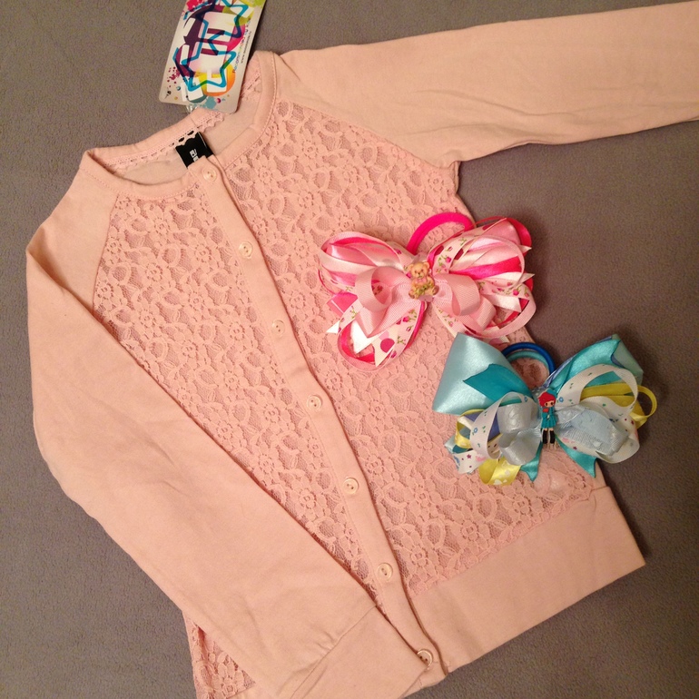 Красивая кофточка для дочи и супер бантики, Юляш, спасибо, они замечательные!