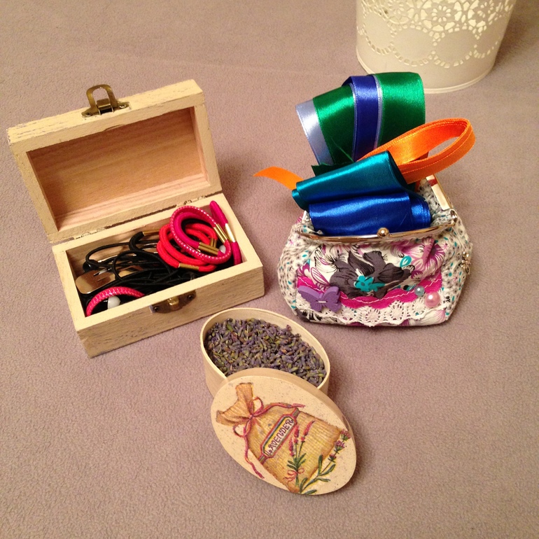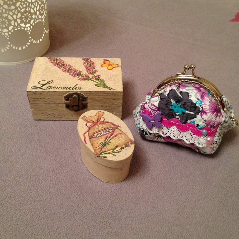 Кошелечек и лавандовые шкатулочки. Люблю лавандовую тематику и всё, что связано с ней... открываю, а в маленькой овальной коробочке лаванда! Юляша, отдельное тебе за неё спасибо, ммм, аромат )))