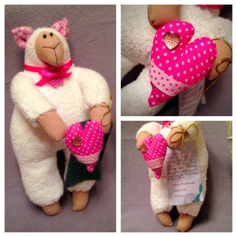 Вот такая волшебная бяшечка, она такая мягонькая и милая ))) А в ручках у неё пожелания от феечки. Юляш, она просто супер, спасибо тебе за тёплые слова! Мы на твою лошадку любуемся, теперь и бяшечка у нас будет )))