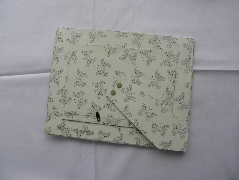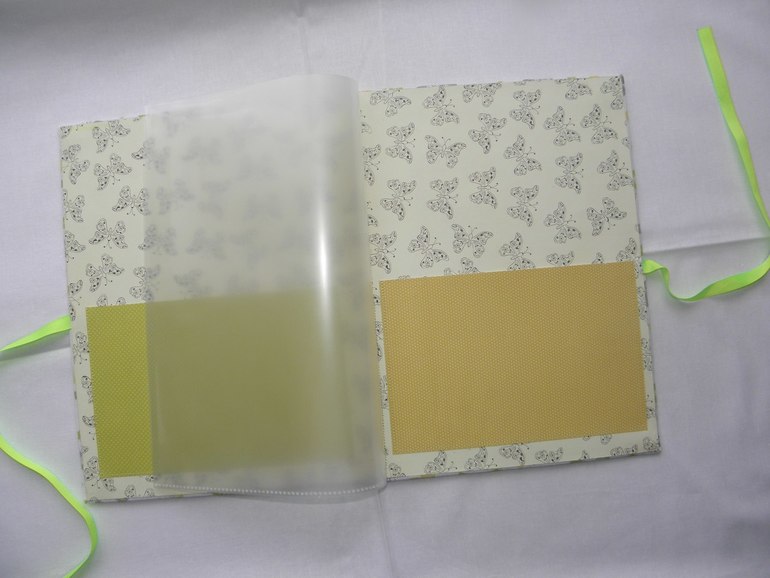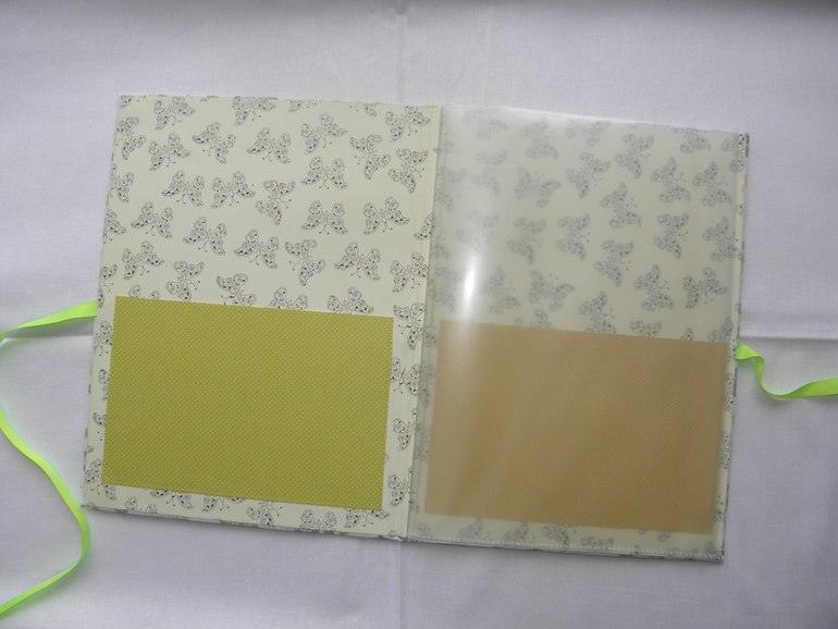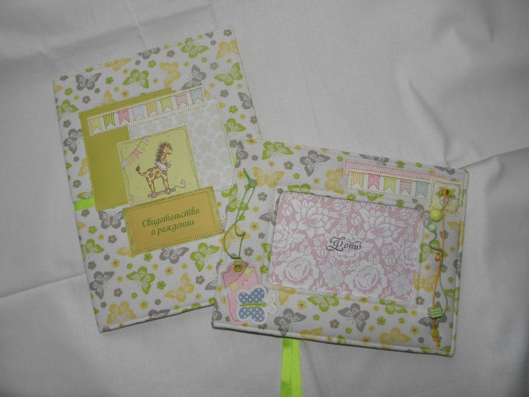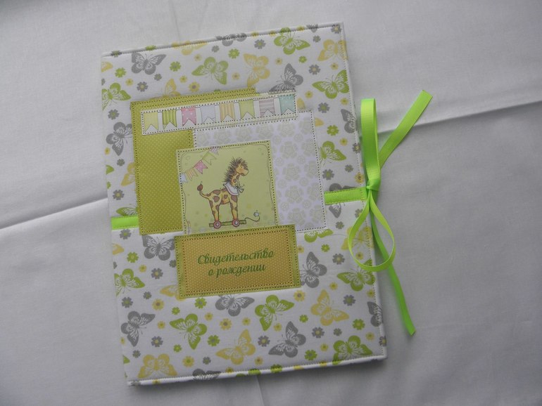 Обложечка проложена флисом для мягкости и обтянута немецким хлопком,внутри имеет два плотных файла и два вместительных кармашка для кодов и свидетельств о крещении девчонок,завязывается на репсовую ленту.