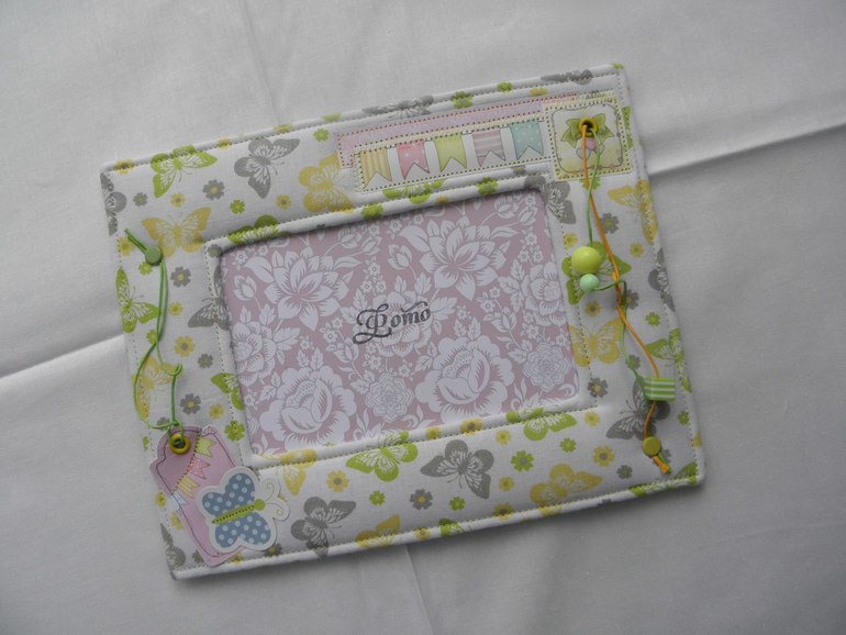 Рамочка для фото 10Х15см,проложена синтепончиком и обтянута немецким хлопком.