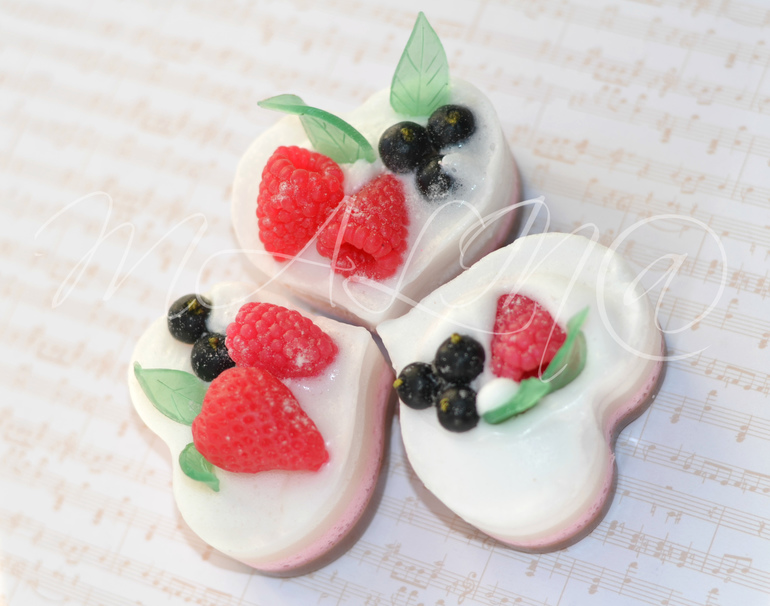 Состав: натриевые соли жирных кислот пальмового масла, пальмоядрового, масла абрикосовых косточек, ши, касторового. Верхушка из мыльной основы. Сногсшибательный ягодный аромат )))