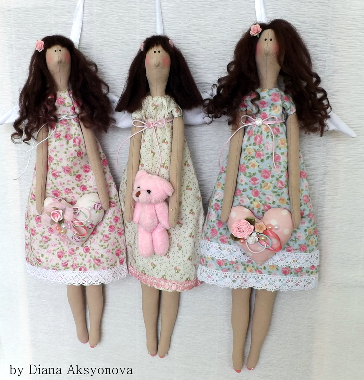 Ангелочки сшиты на заказ для трёх сестренок. Пожелания заказчицы-портретное сходство в прическах, нежня цветовая гаммы одежды, чтобы все между собой сочетались. Отправила фото, жду ответа, надеюсь понравятся куколки) А пока здесь покажу) под катом много фото