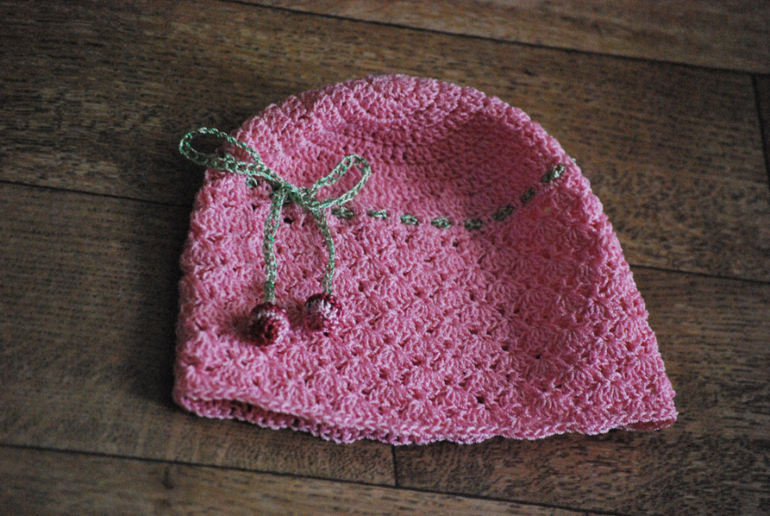 Описание: Шапочка вязанная крючком для малышки 0-3 месяца, теплая+вкусный сюрприз для мамы.