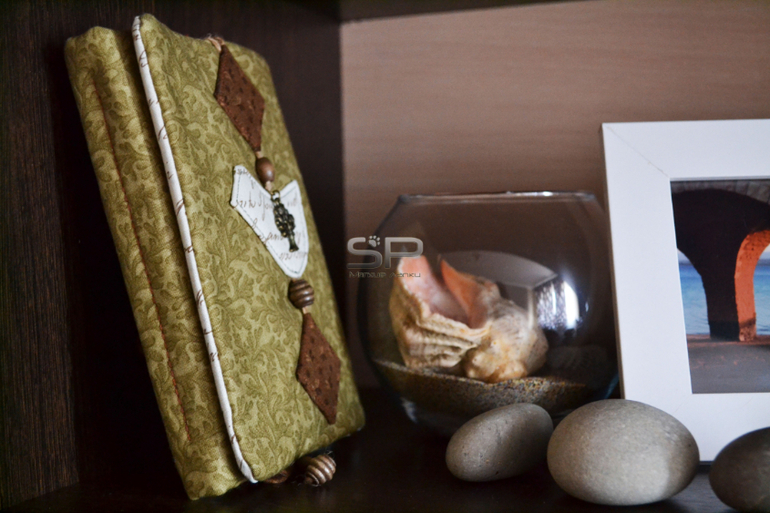 СкрапбукингВот так просто... Зелёный...Цвет в нем очень приятный и цепляет чем-то, либо оттенком, либо незамысловатым принтом, но притягивает однозначно) Софтик выполнен как и все мои мягкие работы из хлопка, тонированной кофе, бумаги для письма (она тоньше офисной, после окраски более мягкая, гибкая), 240 стр., штампики по желанию, пока листочки чистые.