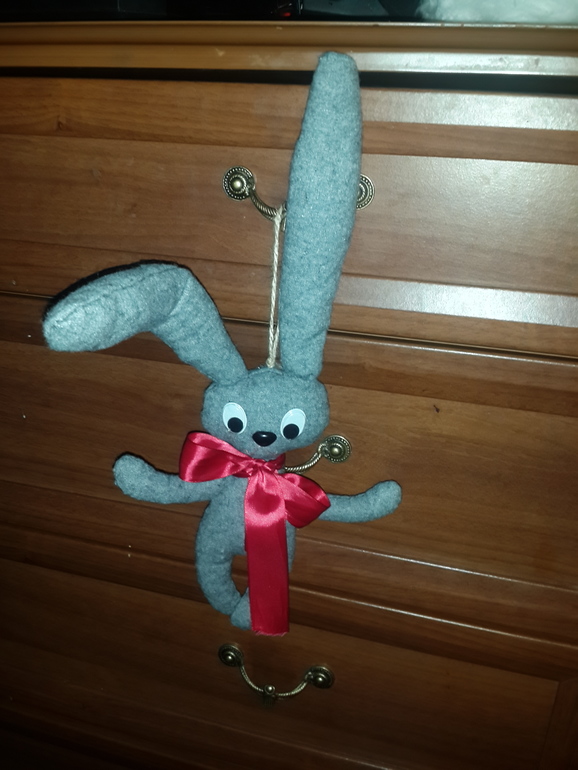 Я быстренько в интернет смотреть подделки своими руками и наткнулась на выкройку зайки.даже не знаю в каком он стиле))думаю все.это оно самое)))нашла старую юбку раскроила ее.глазки и носик у меня были)распустила подушку)))за что от мужа получила
