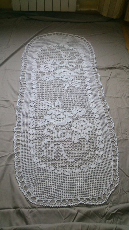 Здоровая получилась. Сестра попросила что-то на стол связать, он у нее как раз такой по форме, стеклянный.