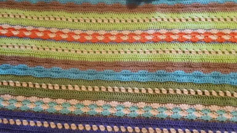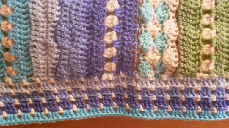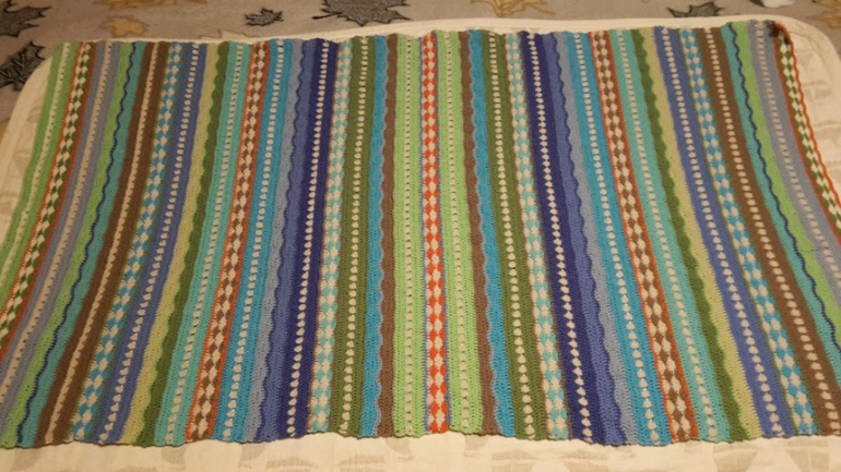 Простите меня - я так и не сделала ВТО - сын не отдает плед, прям бдит - трогать нельзя, обвязку уже делала на коленках. а сын по нему машины катал)))