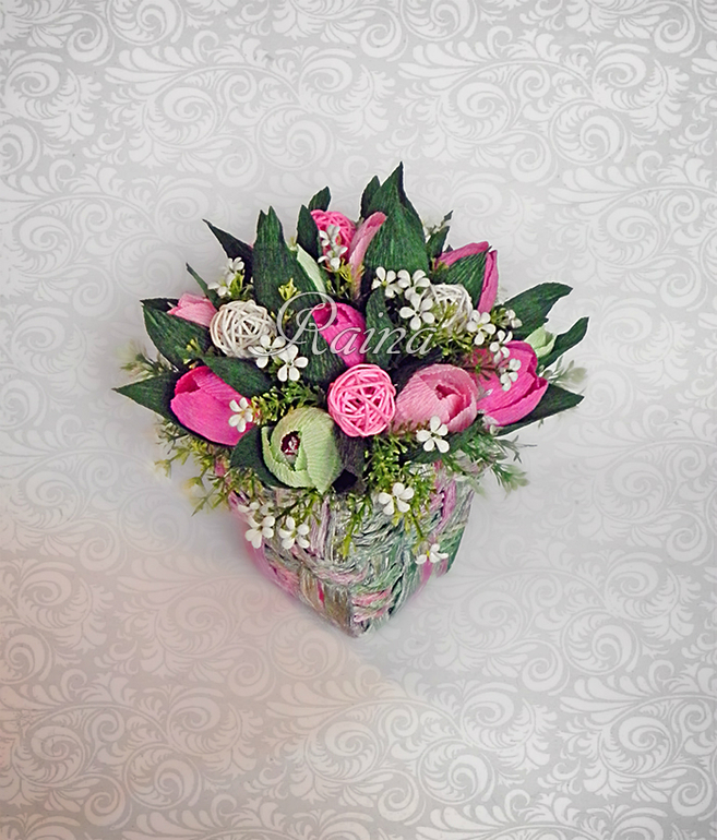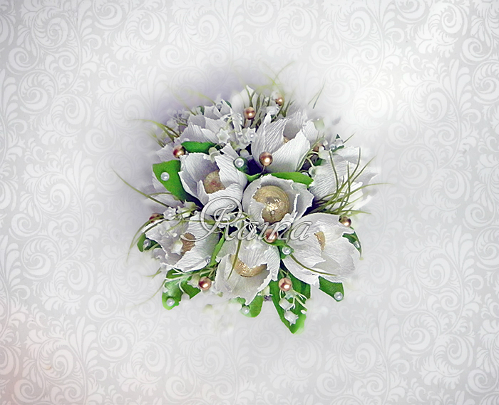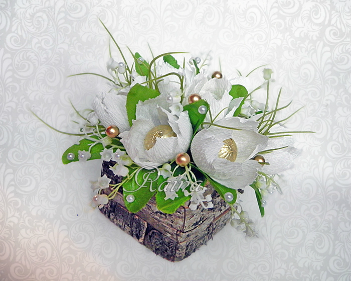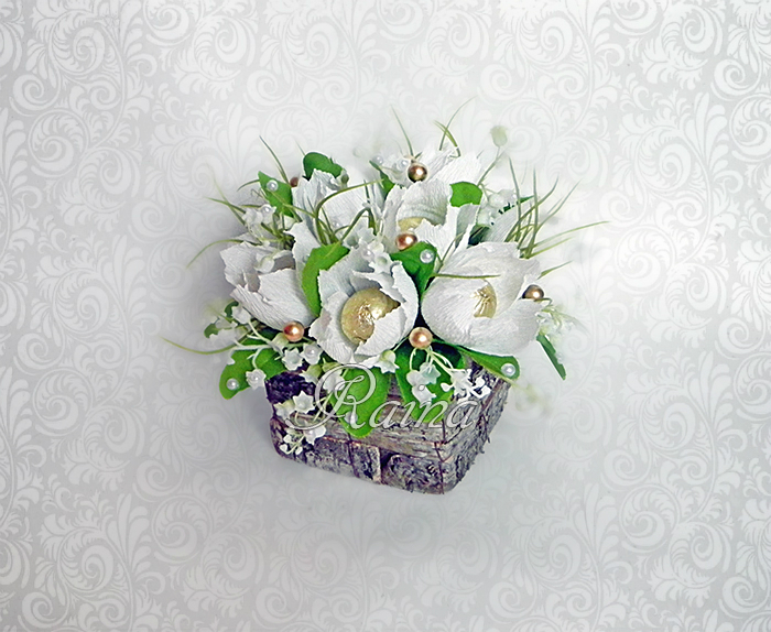 Рая, ты зачем на себя наговариваешь -"вымучила"? Чудесные букеты, нежность такая. А в чем это белый букет? Деревяшечка такая или корзинка?