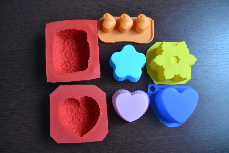 Формочки пластиковые для мыла и для маленькой бомбочки- все целые и чистые (сори не вымываются - сильно жесткая вода).