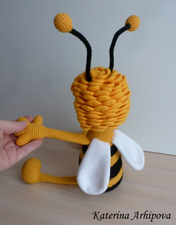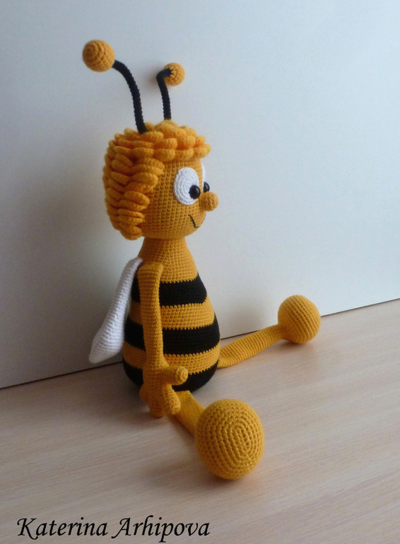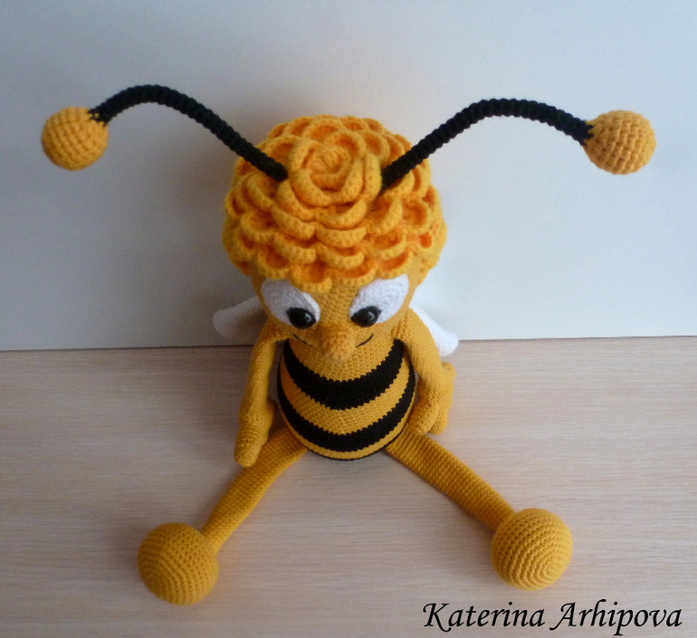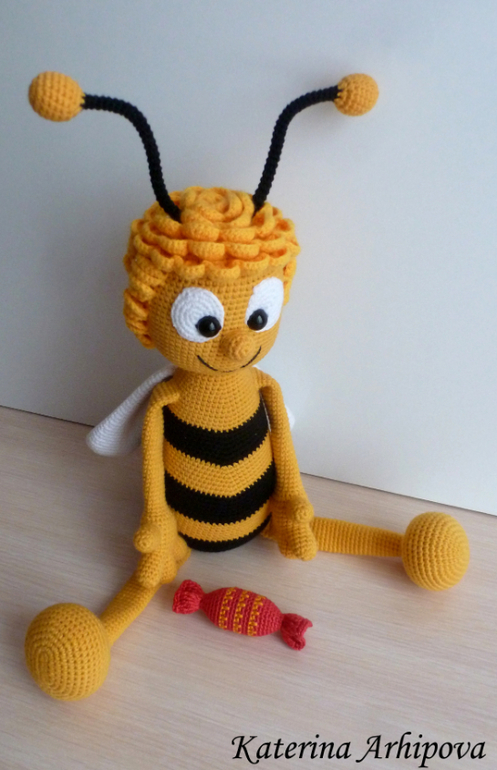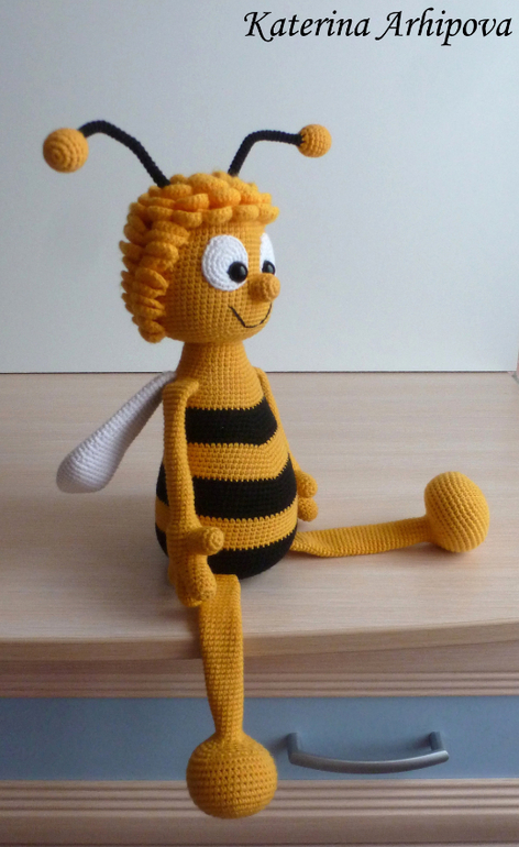 Ну и вот такая "пчёлка Майя"....знаю что не копия,но вообще милая,первый раз вязала по мультику,по большой просьбе,делать этого не люблю конечно....Рост 35см. Как-то так...