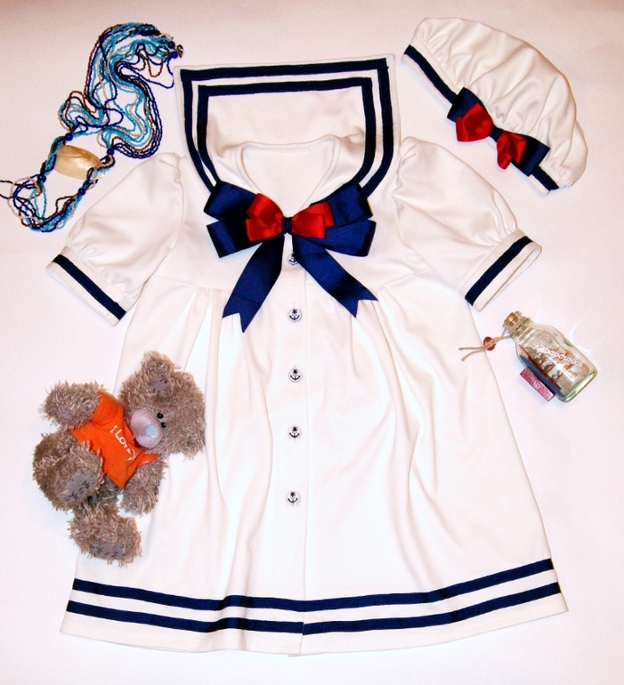 Идею костюма в морском стиле воплотила пока только для дочки. Комплект "Маленькая морячка" очень кстати для отдыха на море, в летнюю погоду и как костюм на новогодние и другие праздники, а также на фотосессию!